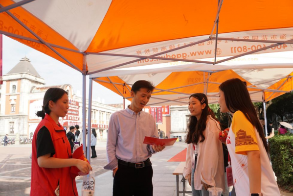 走进起点英庐,秋风吹响时光的号角。返校的人文学院校友们在志愿者服务处进行签到,并领取百年校庆集章卡打卡拍照,重温校园旧梦。在欢声笑语中亲身享受这场百年盛典,让这一趟时光轮转之旅缓缓开启。