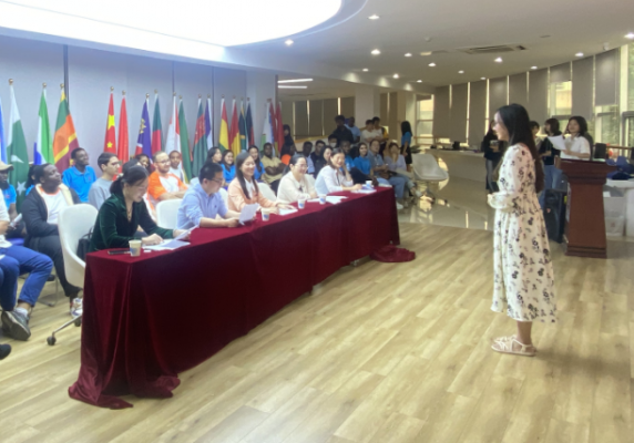 海外教育学院副院长万谊娜在致辞中表示,中华民族拥有五千年的悠久历史和灿烂文明,同学们学好了中文,掌握了认识和了解中国的钥匙,并鼓励留学生们以汉语为纽带,成为连接中国与世界的桥梁,为共建人类命运共同体奉献自己的青春和力量。