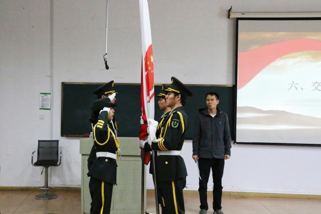 万绍红真挚寄语江西财经大学国旗护卫队的队员们,对国旗护卫队全体干部在过去任职期间的付出表示感谢,对国旗护卫队全体新成员的到来表示欢迎;强调了国旗对于学校乃至国家的重要性,并讲述了天安门国旗护卫队是如何从无到有,再到成为一支作风优良队伍的过程;最后勉励全体国旗护卫队队员,在参与国旗护卫队任务的同时,扎实学好专业知识,使国旗护卫队成为一支综合素质优秀的学生队伍。万绍红生动的讲述深深地吸引了国旗护卫队在座的新老队员。