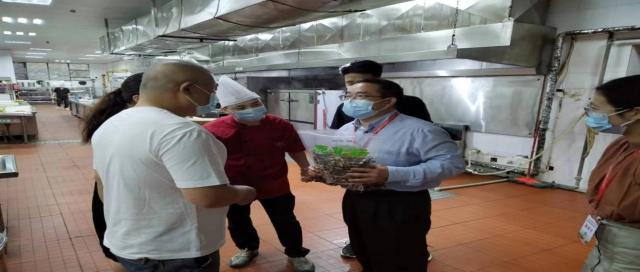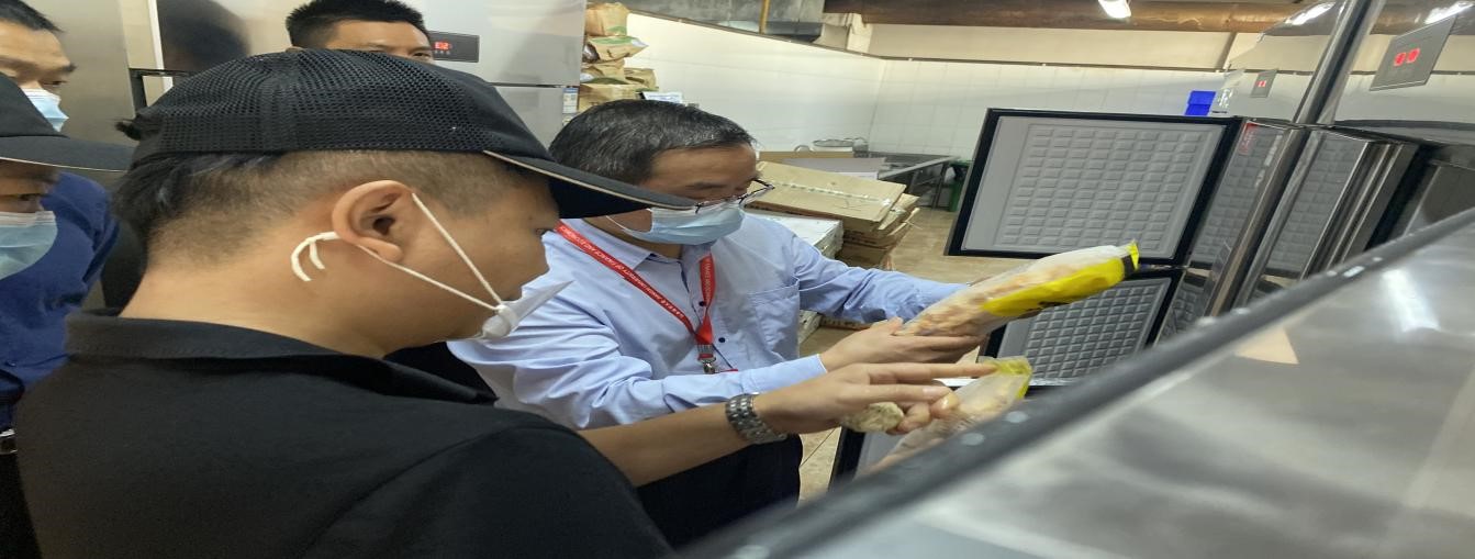 顾有平一行先后来到蛟桥园北区招待所、枫林园食堂一楼、蛟桥园南区食堂一楼等地,通过不打招呼、不定时间的方式,直接到后厨开冰箱、进仓库看食材日期、检查消毒柜是否是摆设,等等。