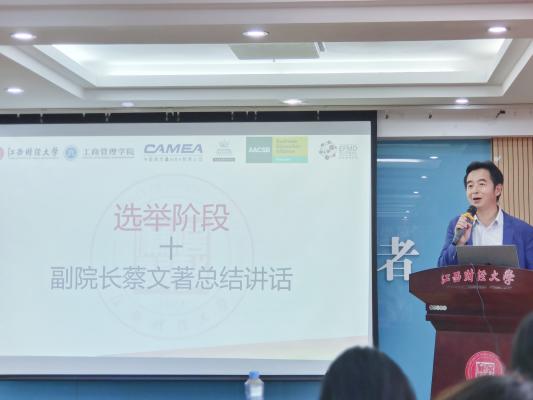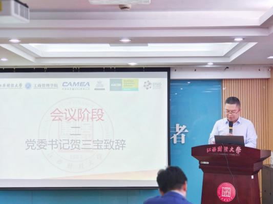 颜弋滟、李钱宝分别代表江西财经大学研究生会和MBA联合会向大会召开表示祝贺。