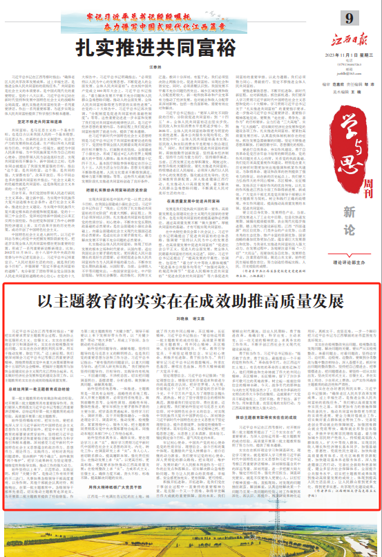111日,《江西日报》09版“学与思”新论刊登我校马克思主义学院院长、教授刘晓泉、博士生谢文嘉的理论文章《以主题教育的实实在在成效助推高质量发展》。