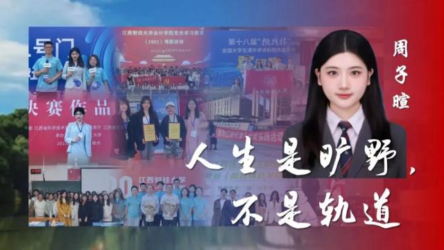 【个人简介】周子暄,会计学院2020级优秀学子,专业总排名前列,德智体美劳全面发展,目前推免至湖南大学。在校期间获得国家奖学金、CMA奖学金、昆山奖学金,并连续三年获得优秀学生干部一等奖学金、优秀团干、学业之星等8项荣誉。获得第十八届“挑战杯”课外学术科技作品竞赛全国二等奖等5项国奖、2项省奖、20余项校奖,发表论文1篇,拥有1项专利、1项软著,担任5项科研课题负责人。在校期间曾担任团支部书记、学生会组织部骨干、思创案例拓展社多媒体部门部长、助理班主任、校友办助理以及中国旅游产业基金管理有限公司基金经理助理等,课余时间运营小红书及抖音账号,累计获赞量10万。