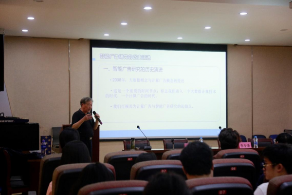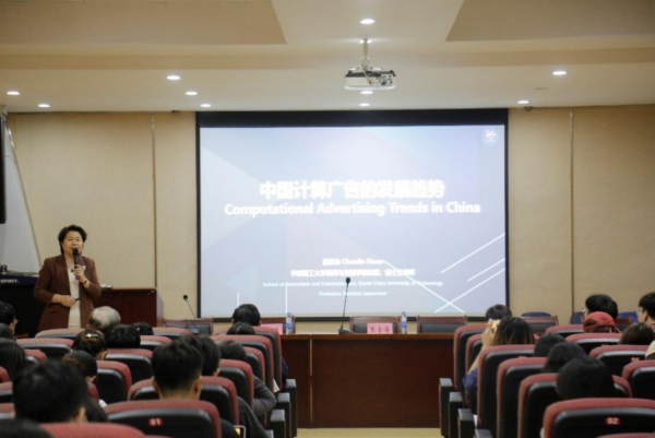 为更好地探究广告传播的智能化转型路径,推动我院新闻传播学研究、教学与实践深入发展,由我校人文学院举办的“智能传播与广告发展”高端论坛在麦庐校区召开。本次论坛聚焦智能广告、计算广告、ChatGPT等众多前沿领域,探索新文科背景下广告发展与人工智能技术深度融合的新思路和新战略。本次论坛由人文学院院长、博士生导师蒋国河教授、新闻与传播系罗书俊教授共同主持,人文学院部分教师及百余名新传学子到场聆听讲学。