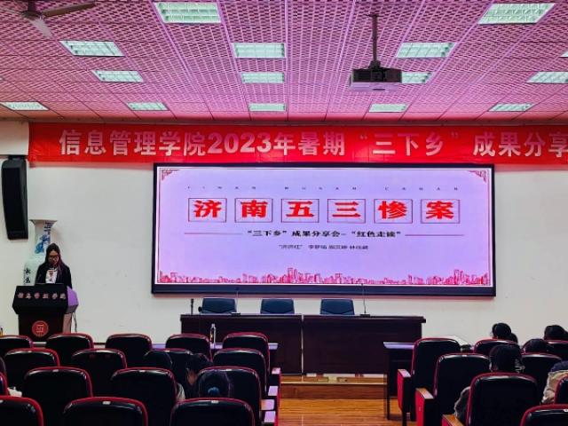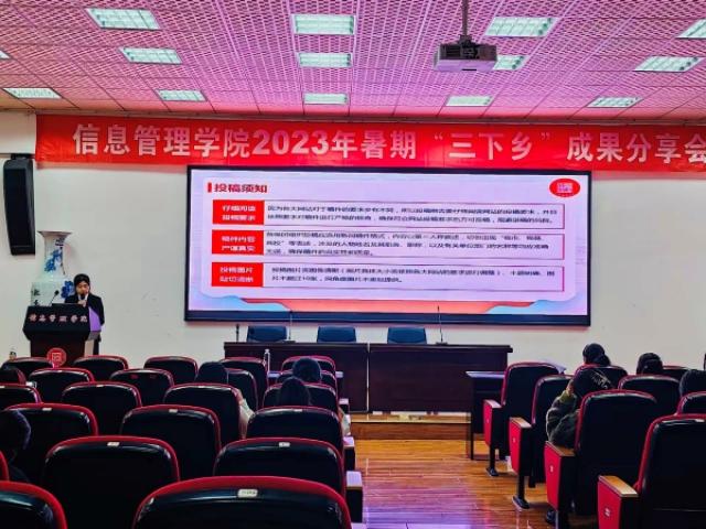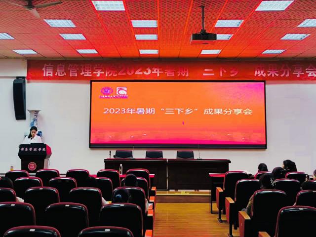 为促进师生更深入地体会“三下乡”实践活动的意义与魅力,深刻了解国情省情社情民情,提高社会化能力,江西财经大学信息管理学院于11月11日在荟庐大报告厅成功举办了“三下乡”成果分享会。此次活动一方面是为了总结信息管理学院2023年暑期三下乡的实践成果,另一方面是为了鼓励各位信管学子积极参与三下乡的活动,投身社会实践。