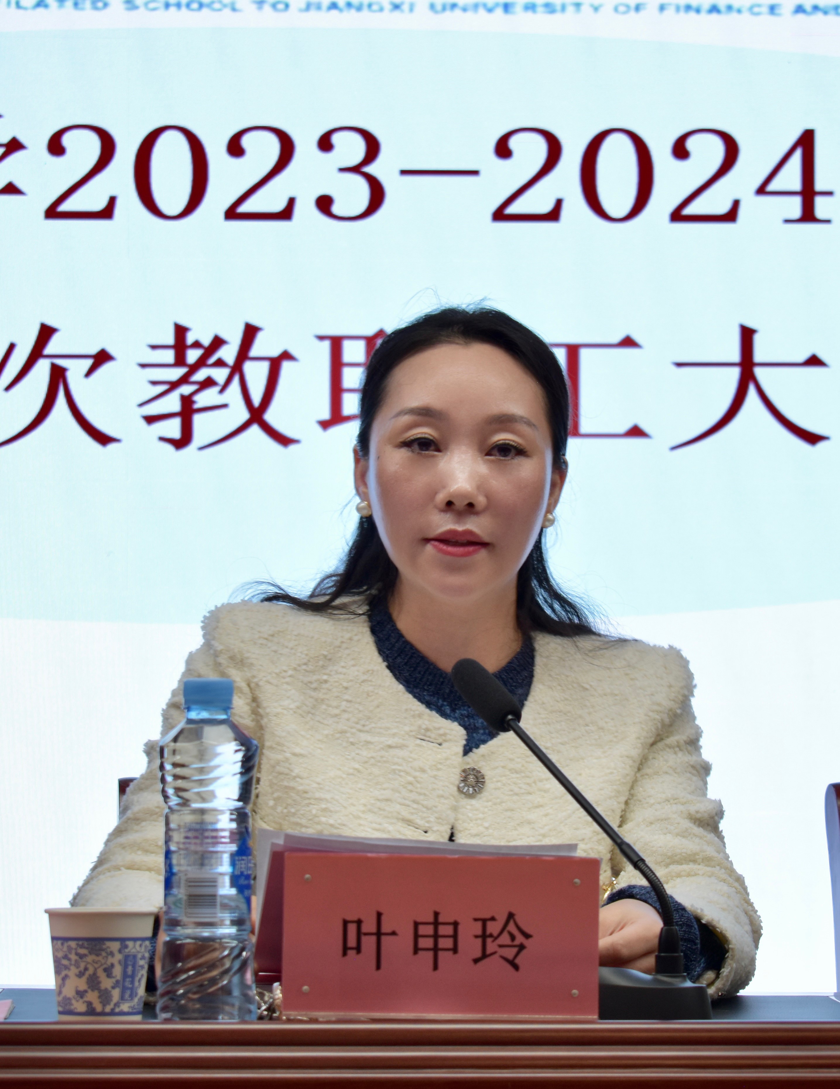 叶申玲作了主题为“杏坛耕耘 筑梦前行”总结讲话。她总结了前阶段的工作,并科学部署了后阶段的工作。肯定了现取得的各项成绩,表示成绩离不开所有教职工的凝心聚力;同时,强调了教学工作的重要性,要求各位老师加强教学过程管理,提高教学质量。并鼓励大家坚持守正创新,严守纪律,廉洁从教,砥砺前行,精诚团结,共同创造财大附中的美好明天。