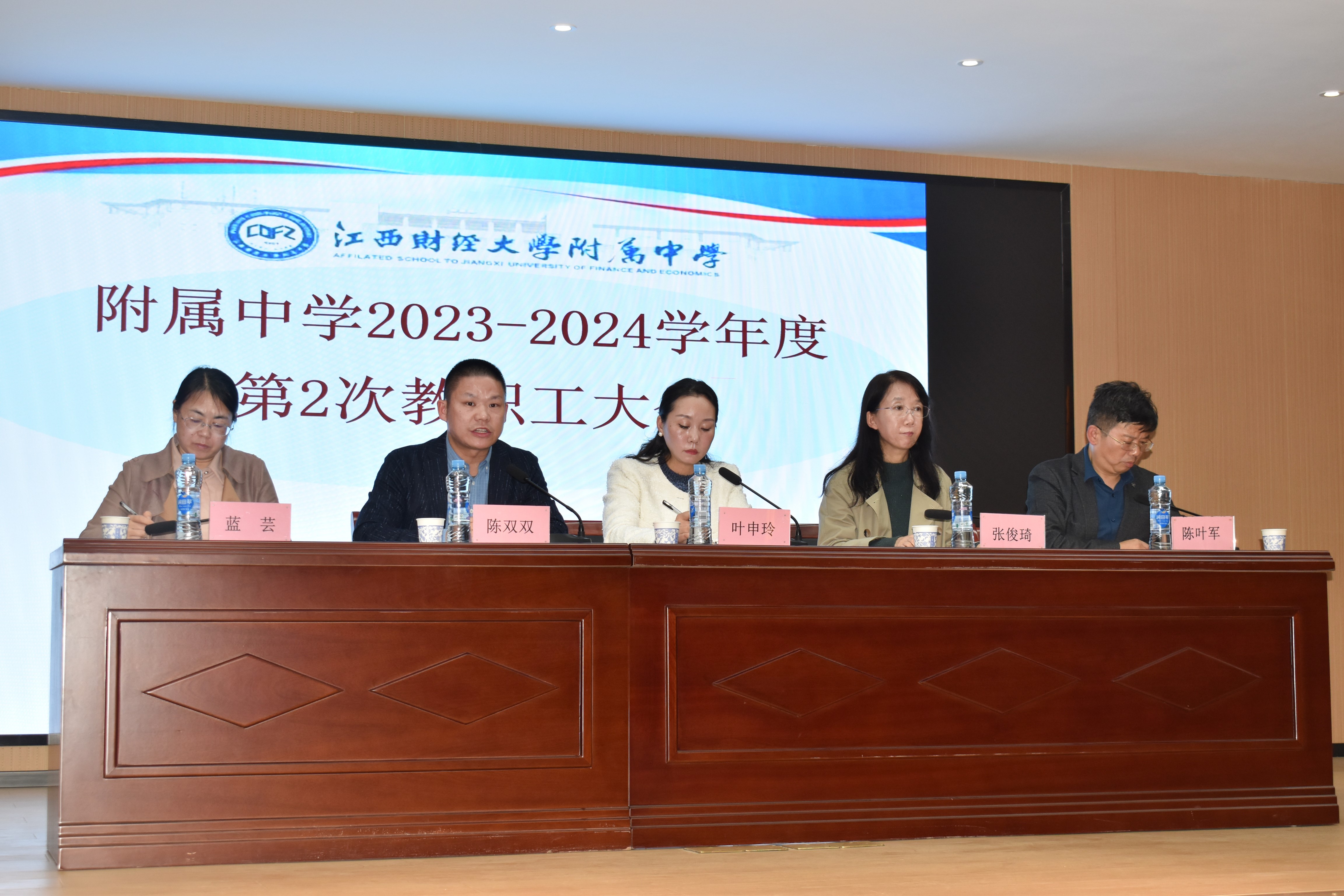 近日,附属中学召开2023-2024学年第2次全体教职工大会。附中党总支书记叶申玲、校长张俊琦及全体教职工参加本次会议,会议由附中党政办主任陈双双主持。