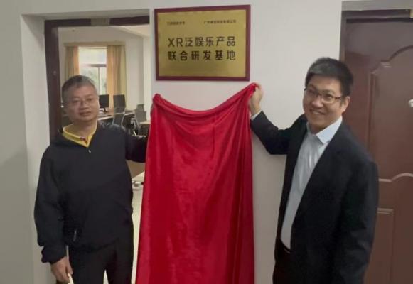廖国琼与阳序运共同为XR泛娱乐联合研发基地揭牌。