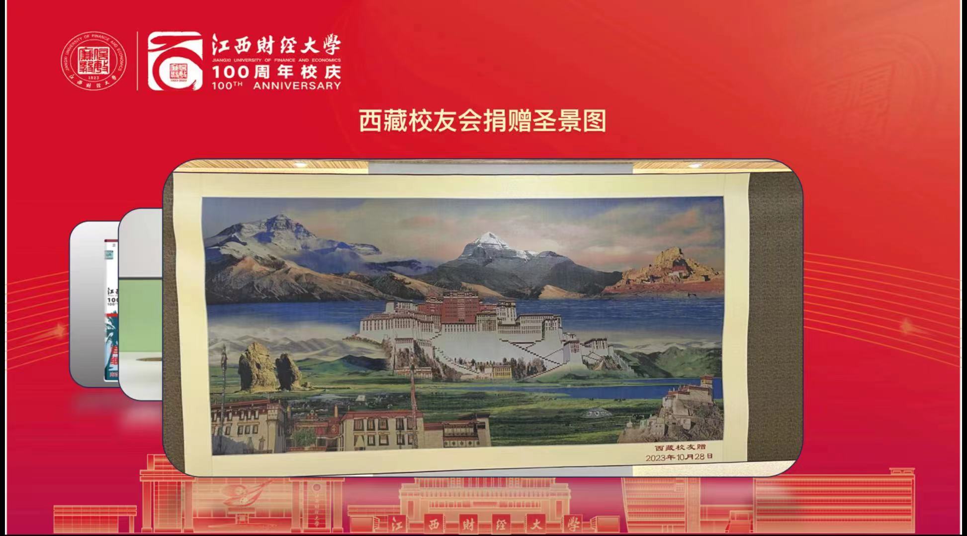 仪式过程中,师生校友们重温了百年江财一江两岸主题灯光秀、校庆晚会千架无人机表演、江西地标红谷滩秋水之光裸眼3D巨幕祝福、“江财小精灵”的前世今生等精彩视频,并观看实物捐赠PPT展示,共同感受百年校庆带来的江财荣耀和精神动力。