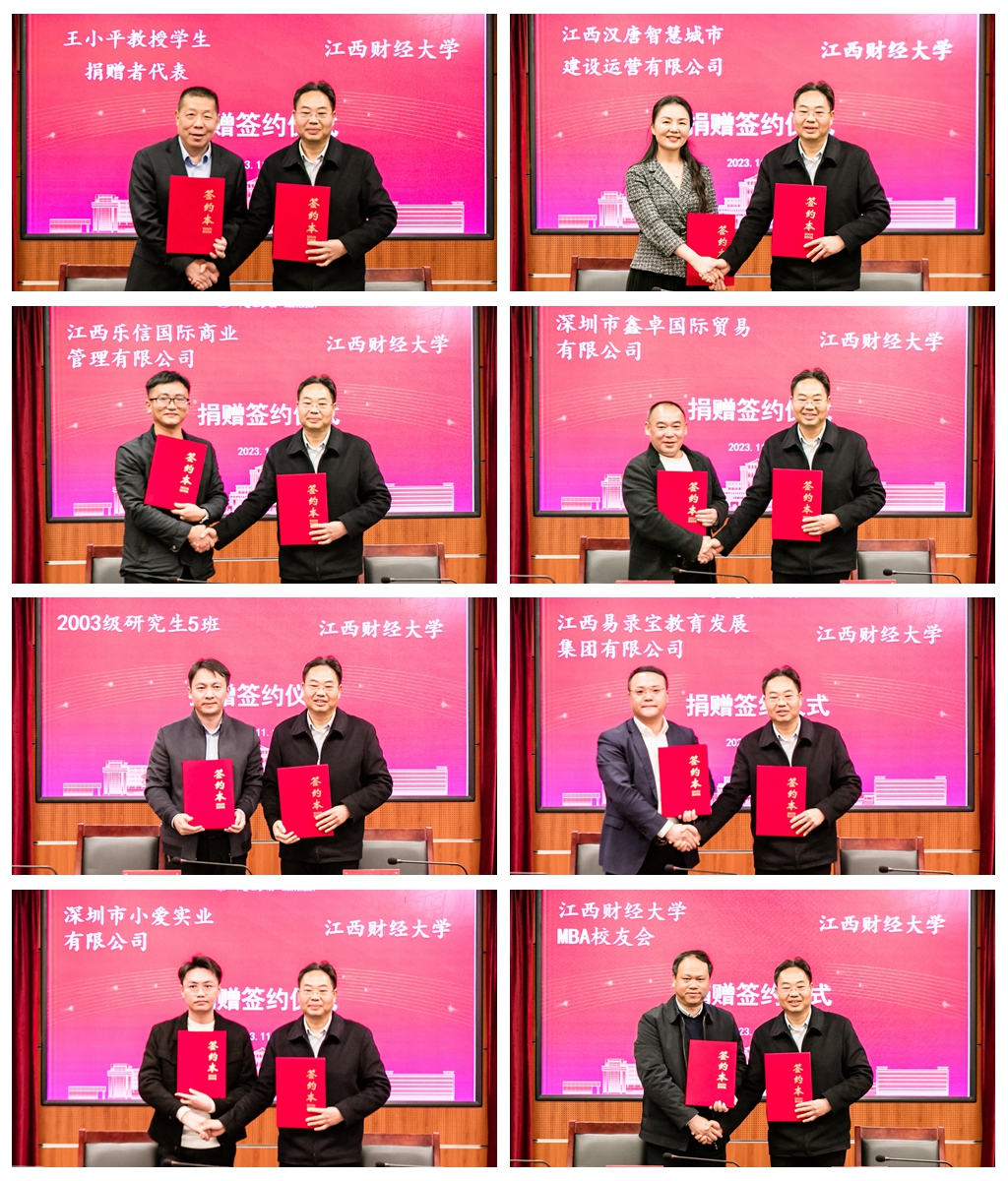 百年校庆系列活动虽已落下帷幕,但校友们助力母校发展的热情持续高涨,校友捐赠再掀高潮。11月16日,“百年江财发展基金”第二批集中捐赠签约仪式及捐赠项目展示在蛟桥园图文信息大楼举行。校党委书记卢福财,副校长阙善栋,副校长袁雄出席仪式,参与捐赠的校友、校友企业、校友会、社会爱心企业以及各学院、相关职能部门负责人和师生代表近150人参加。仪式由校友联络服务中心主任夏贤锋主持。