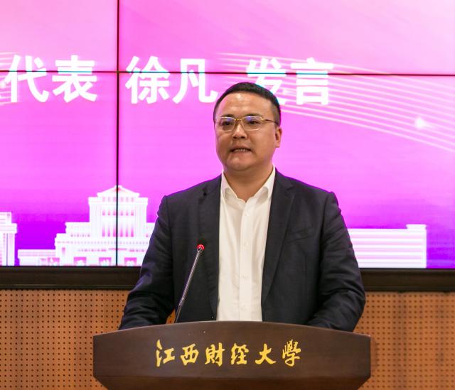 江西易录宝教育发展集团有限公司董事长徐凡作为校友代表发言,感谢母校老师们的谆谆教诲和倾囊相授,感谢母校对创业者的包容、鼓励与支持,感谢母校党团教师们的关心和爱护。希望通过此次捐赠,带动更多校友支持母校发展,并表示将不断努力为学校做出新贡献。