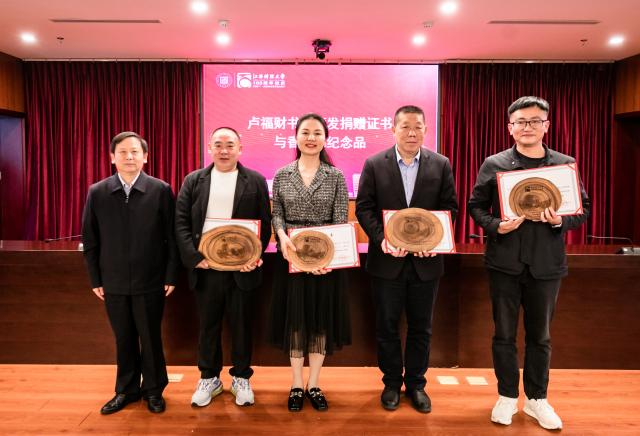 卢福财为资金捐赠单位颁发捐赠证书和纪念品。