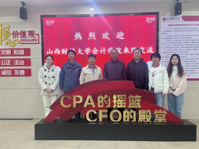 1120日上午,山西财经大学会计学院副院长田岗一行来会计学院调研交流。山西财经大学会计学院财务会计系主任王晓亮,专任教师王婉婷、李晓艳参加调研。江西财经大学会计学院副院长熊凌云、研工办主任曾海龙、研究生辅导员蒋博斌参会。