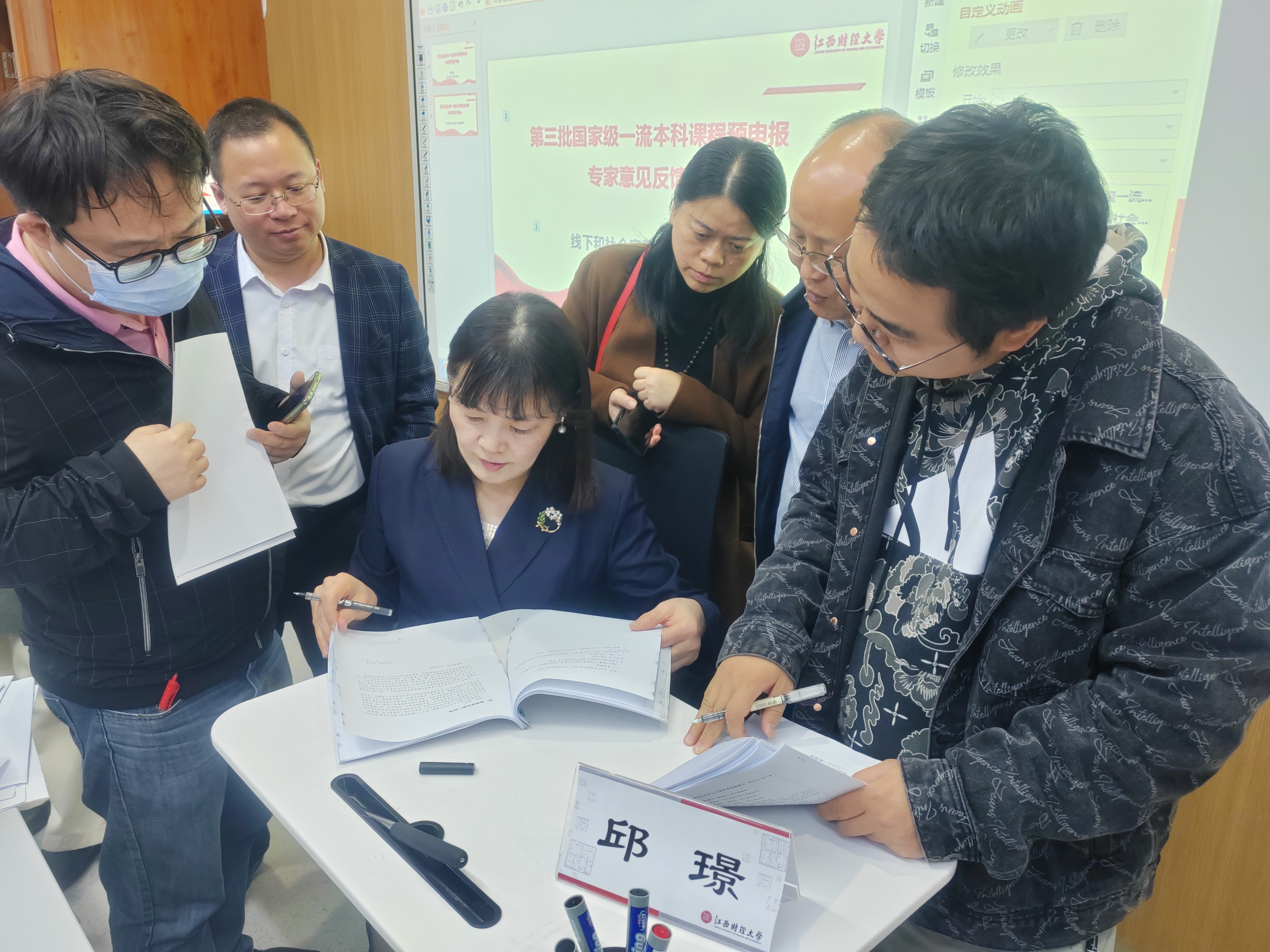 国家级一流本科课程《民间美术》负责人邱璟教授首先从国家一流本科课程评价指标、申报书撰写、附件材料撰写整理等方面,对线下一流本科课程和社会实践一流本科课程申报做了全面解读,并对本次提交的这两类课程申报书逐一进行了详细的点评和细心指导。
