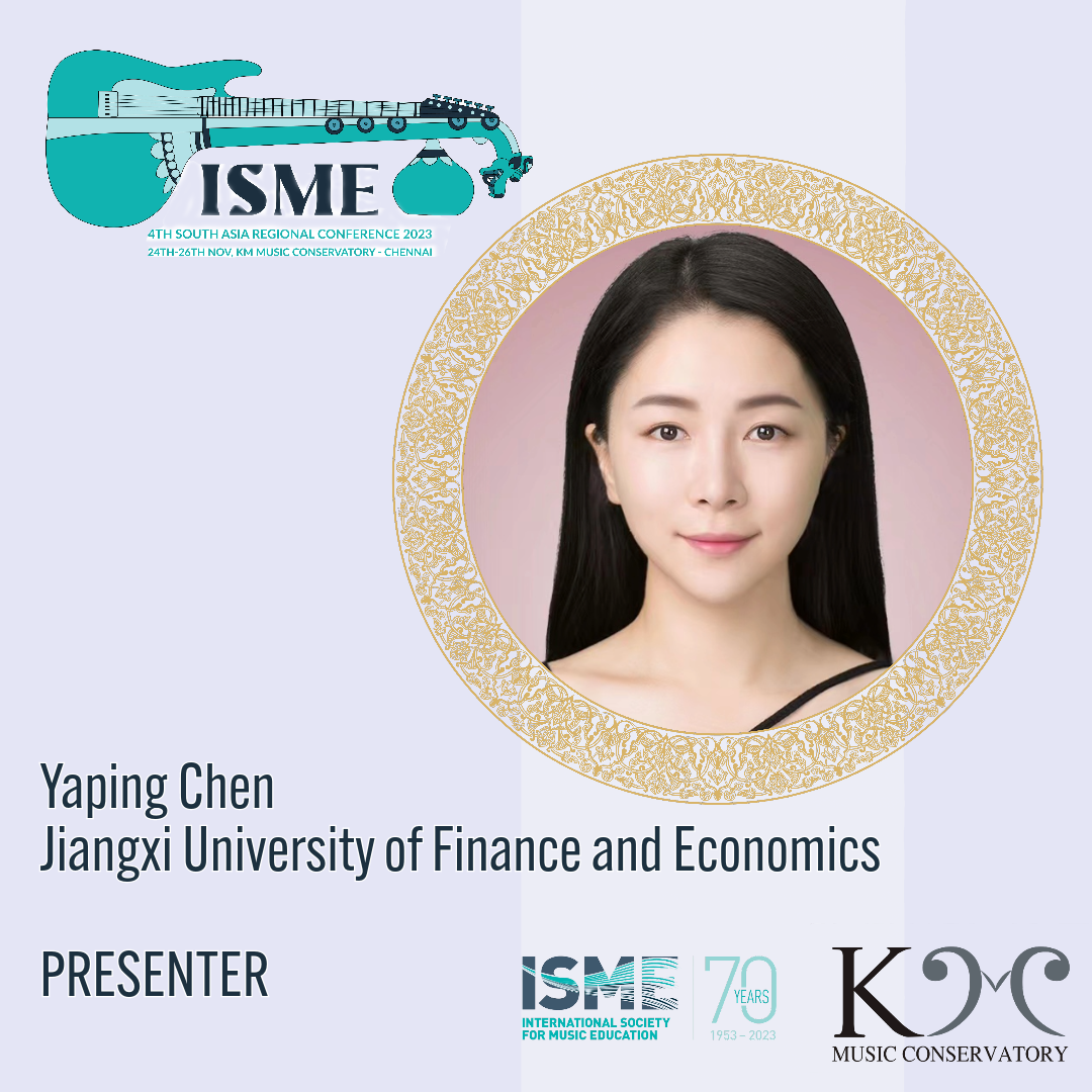 教育学会(ISME,International Society for Music Education)委员会主办,第四届ISME南亚区域会议(South Asia Regional Conference)于2023年11月24日至26日在印度金奈(KM)音乐学院举行,本次会议主题“音乐作为教育:多元文化主义、学习和认知增强以及倡导”,我校艺术学院青年教师陈雅萍受邀进行20分钟发表相关研究报告,并进行与会现场的交流。