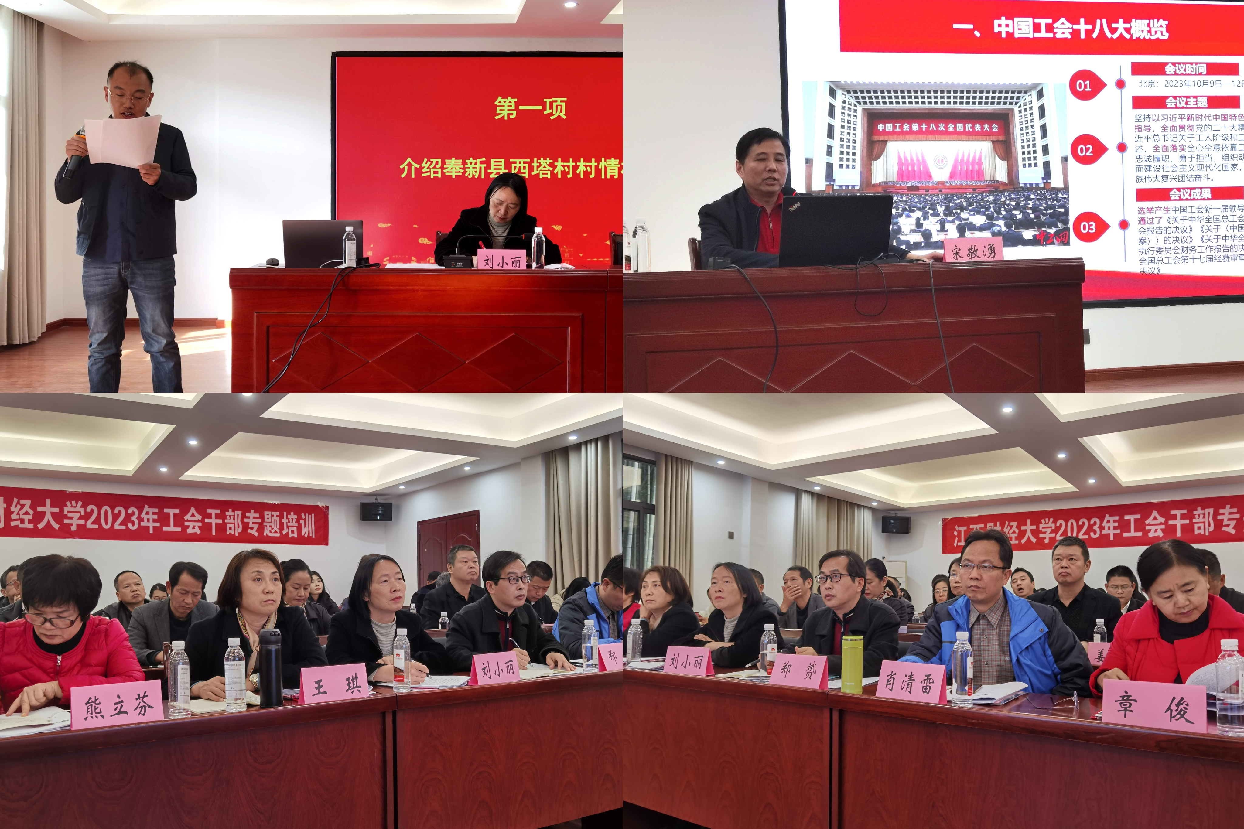 为深入学习贯彻习近平总书记重要讲话精神和中国工会十八大精神,落实习近平总书记关于工人阶级和工会工作的重要论述,持续加强基层工会队伍建设,提高工会干部政治能力、专业能力和群众工作能力,11月24日,工会在奉新县西塔村组织举办了“凝心铸魂学思想 笃行实干建新功”2023年工会干部培训班,副校长刘小丽,校工会委员,各分工会主席,教工文体协会负责人40余人参加了培训。
