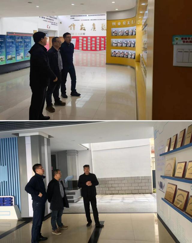 屈超一行观看了我校创新创业教育宣传片,参观了学院大事记、创业校友、创业导师、一站式服务中心等项目展示,交流会后到我校虚拟现实(VR)现代产业学院进行了参观交流。(图文/创业教育学院 编辑/吴仕洲 审核/一审 姜莹 二审 赵旻 终审 李大晖)