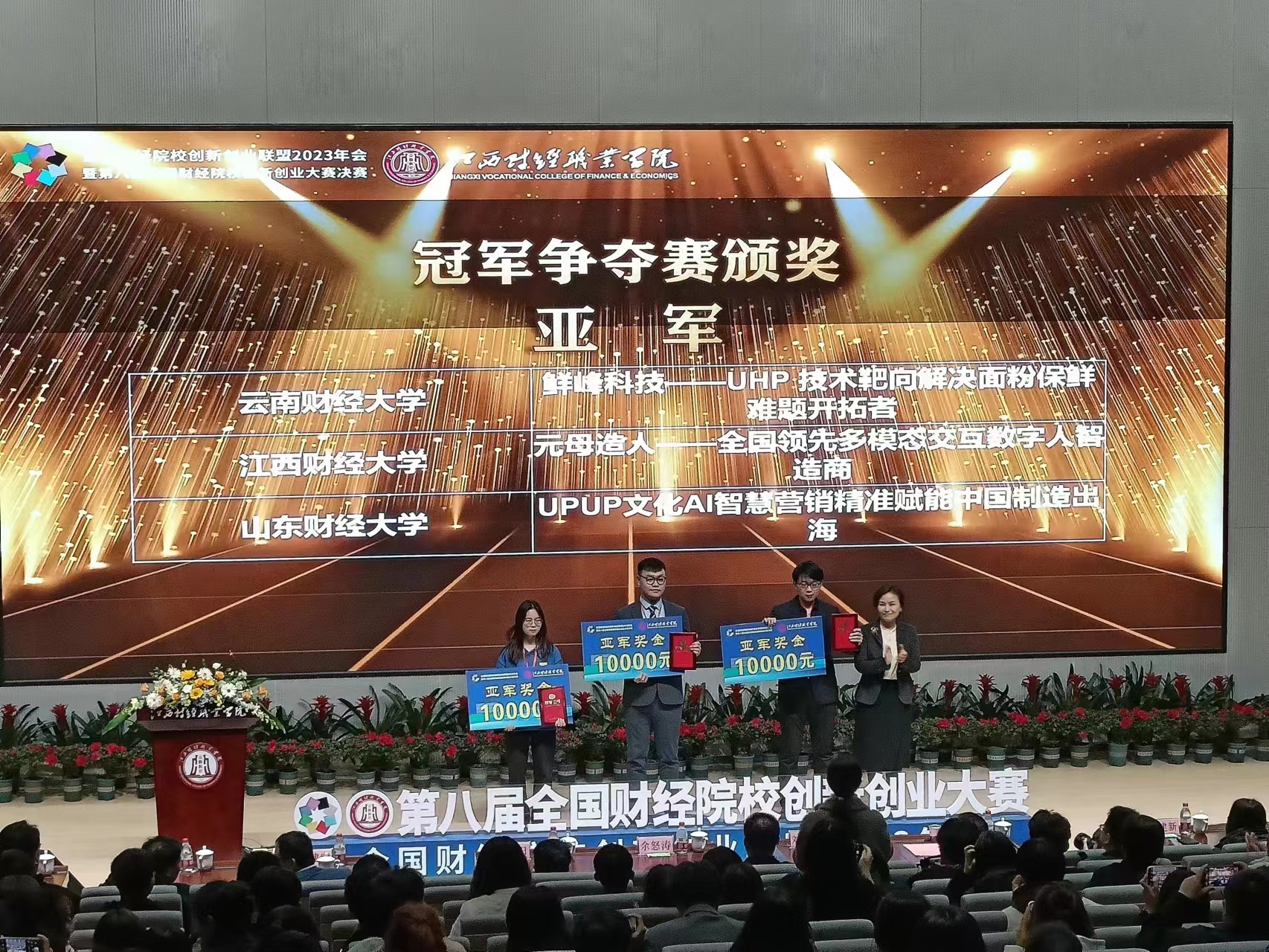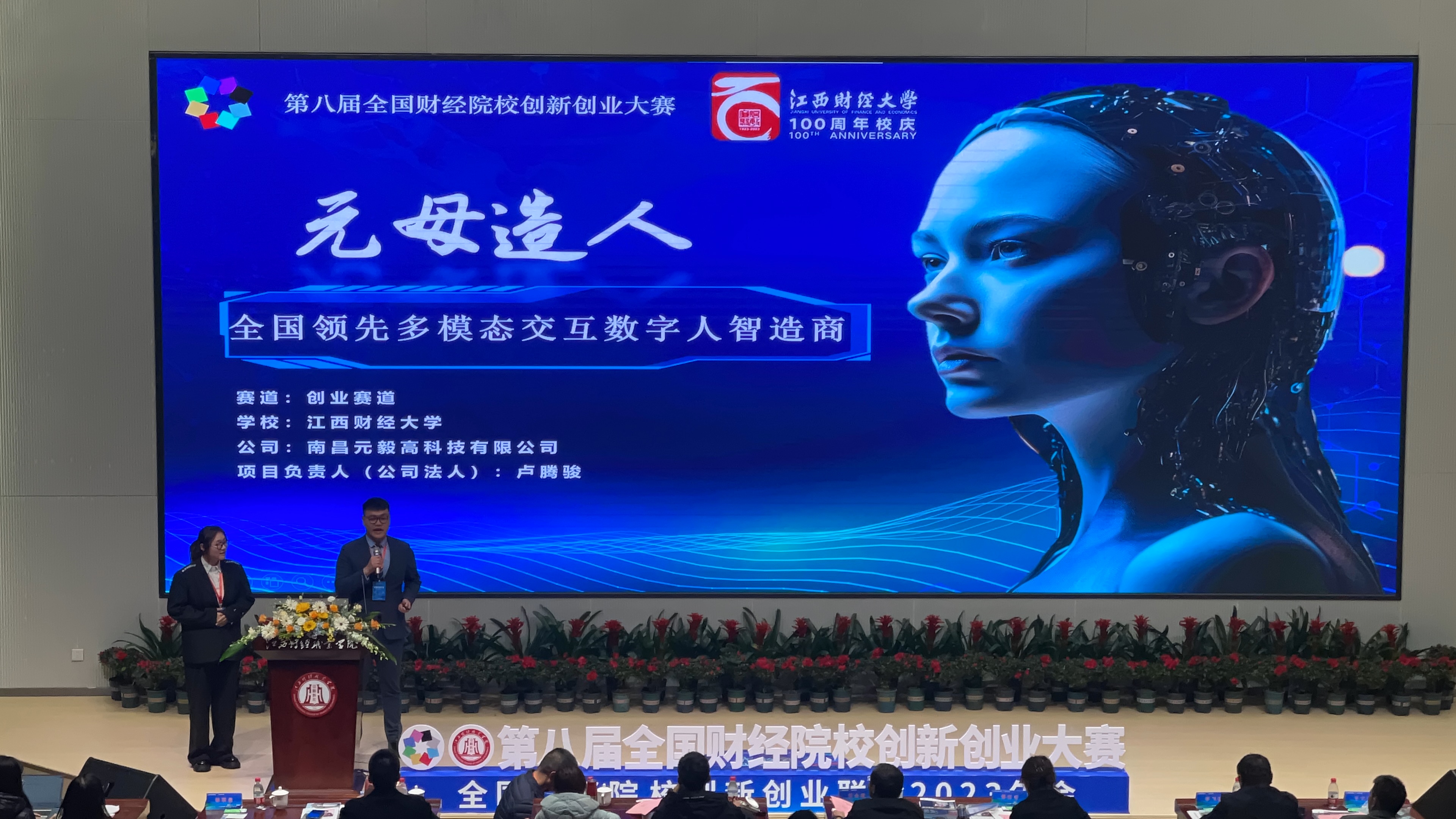 11月25日,由中国高等教育学会创新创业教育分会指导、全国财经院校创新创业联盟主办、江西财经职业学院承办的全国财经院校创新创业联盟年会(2023)暨第八届全国财经院校创新创业大赛决赛在江西财经职业学院八里湖校区落下帷幕。本次大赛决赛共有来自全国39所财经高校的数百名学子、90余个大学生创新创业项目参赛。我校三个项目团队进入全国总决赛,最终获得一等奖1项,二等奖1项,三等奖1项,其中“元母造人——全国领先多模态交互数字人智造商”项目获得全场亚军和一万元奖金。