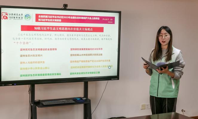 会上,绿派社成员集体学习了习近平总书记在2023年全国生态环境保护大会上的讲话。学生代表谈了自己对习近平生态文明思想的认识与理解,并对青年“挺膺担当”的实践成果进行汇报。(文/工商管理学院 刘子含 万心语 王媛 图/李军 编辑/万辰熙 审核/一审 姜莹 二审 赵旻 终审 李大晖)