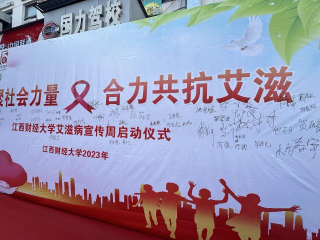 阙善栋指出,学校对艾滋病宣传防控工作高度重视,出台了《江西财经大学艾滋病预防控制实施方案》,成立了艾滋病防控工作小组。他介绍了我校防治艾滋病的特色做法和经验,号召全校师生携手同行,做“红丝带”精神的倡导者、传播者、实践者,积极参与艾滋病防治,共同为人类艾滋病防治事业贡献自己的力量。阙善栋还与老师、志愿者们一起进行签名打卡,同学们在仪式中感受到携手防艾的重要性与凝聚力量的积极价值,踊跃上前,热烈参与,一笔一划书写自己的情谊。