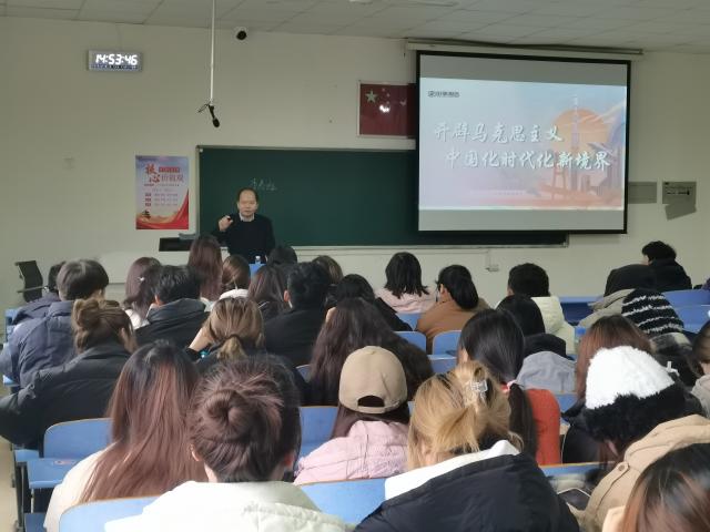 12月13日下午,副校长李春根走进课堂,为数媒艺术232班、环设233班、环设234班本科生讲授思政课。李春根讲授的主题为开辟马克思主义中国化时代化新境界”讲授内容主要围绕“内涵博大精深”“彰显实践伟力”以及“绽放真理光芒”三个方面展开。