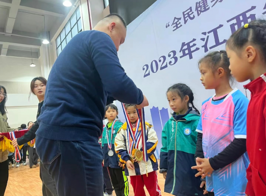 12月10日比赛正式打响。来自全省48支参赛队伍,约500名参赛选手齐聚赛场各显身手。江西省体育局党组成员、副局长张松涛莅临现场为选手助力加油,对少儿体育发展给予肯定。赛事邀请到世界跳水冠军彭勃和体操国际级裁判钟萍萍为获胜选手进行颁奖,以体育标杆人榜样引领的作用,感召国之栋梁秉持“更高、更快、更强、更团结”的奥林匹克精神践行全民健身、健康中国的“体育强国梦”。