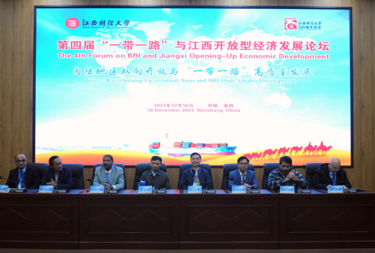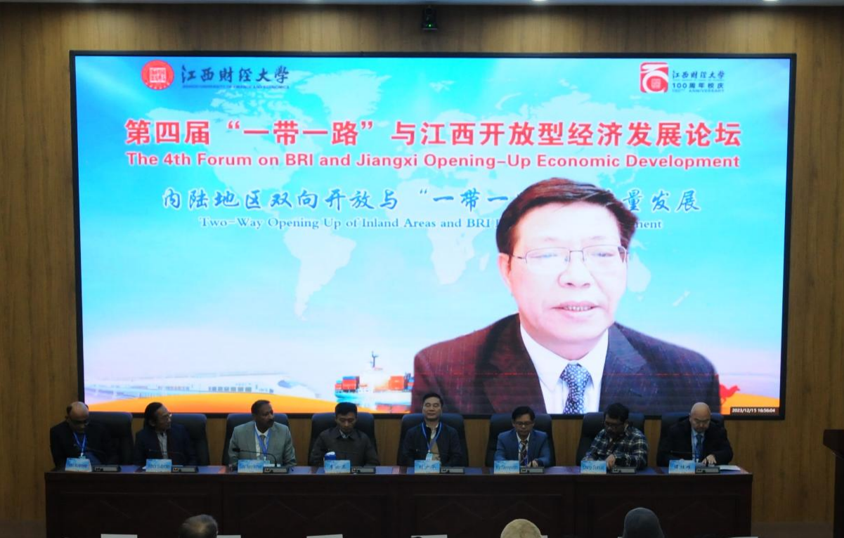12月16日上午,江西财经大学举办第四届“一带一路”与江西开放型经济发展论坛。本届论坛主题为“内陆地区双向开放与‘一带一路’高质量发展”。副校长袁红林出席论坛开幕式并致辞(云端),苏丹前驻华大使Gafar Karar Ahmed、江西省税务局二级巡视员刘少华、中国江西国际经济技术合作有限公司副总经理李必亚、柬埔寨皇家科学院中国研究所所长Ky Sereyvath、江西省金控外贸集团总经理谭胜难、印度尼西亚大学战略与全球研究院院长Athor Subroto、雅加达国立大学经济学院院长Usep Suhud、巴基斯坦喀喇昆仑国际大学中国研究中心主任Faqeer Muhamamd出席开幕式。本次活动主论坛分为两个阶段,分别由国际经贸学院院长吴朝阳、副院长王树柏主持。
