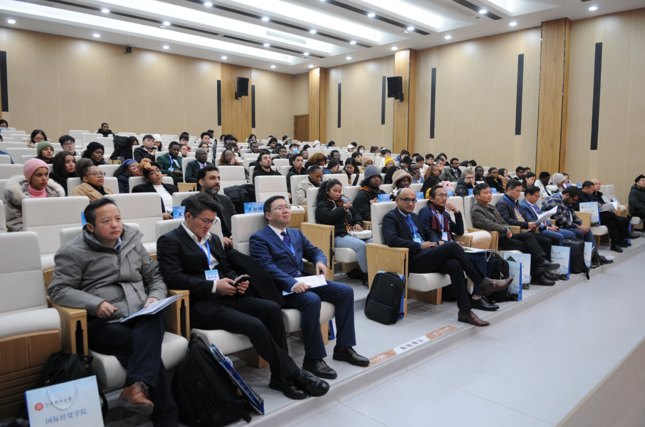 在来华留学生专场平行论坛上,国际经贸学院国际商务专业硕士来华留学生James Amolloh Omondi(肯尼亚籍)、Kyamuhangawa Nathan(乌干达籍)、Kumba Nyangba(塞拉利昂籍),国际贸易专业博士来华留学生Derrick Abina(加纳籍)、Mohammad SaiyedulIslam(孟加拉籍)、Haitham Salim Hamed Al Manhi(阿曼籍)共计6名主讲学员就“一带一路”倡议与地区经贸合作相关话题与现场国内外学生进行交流分享。