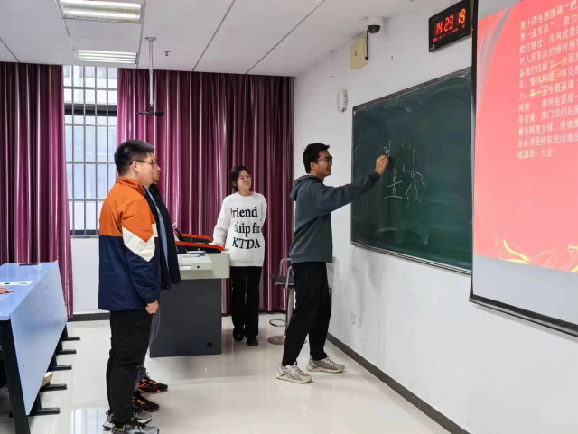团支部书记张思怡从根本制度、首要任务、精神力量三个方面概述了《习近平新时代中国特色社会主义思想专题摘编》的主要内容,强调了“深刻认识新时代坚持和加强党的全面领导”“习近平总书记关于高质量发展的系统论述”和“铸就社会主义文化新辉煌的重大意义与核心任务”三个关键点。