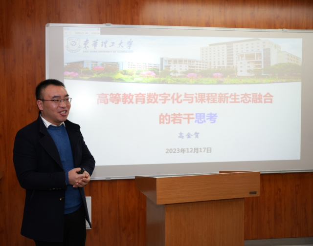 东华理工大学现代教育技术中心主任高金贺以“高等教育数字化与课程新生态融合的若干思考”为题作专题报告。报告具体分析了国内外高等教育数字化发展动态,提出了数字化视阈下课程新生态的构建思路。