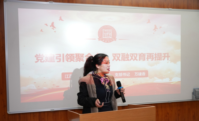 江西财经大学教务处党支部书记、教务处处长万建香以“党建引领聚合力,双融双育再提升”为题作专题报告。报告从始终把党的政治建设摆在首位、高质量推进主题教育、意识形态工作与党建有机融合、积极开展“双融双育”活动、2024年党建工作思路和措施等五个方面详细阐述了江西财经大学教务处党支部党建引领中心工作的举措。