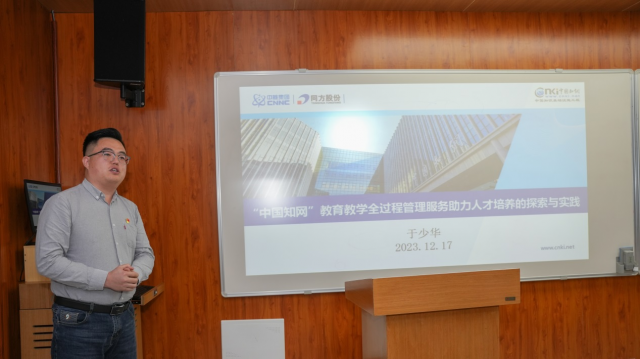 中国知网江西分公司区域项目经理于少华以“‘中国知网’教育教学全过程管理服务助力人才培养的探索与实践”为题作专题报告。报告从教育教学全过程管理服务、赋能大学生全过程培养、大模型时代的机遇与挑战、深化服务等4个方面详细介绍了中国知网平台全过程管理服务,助力高校人才培养。