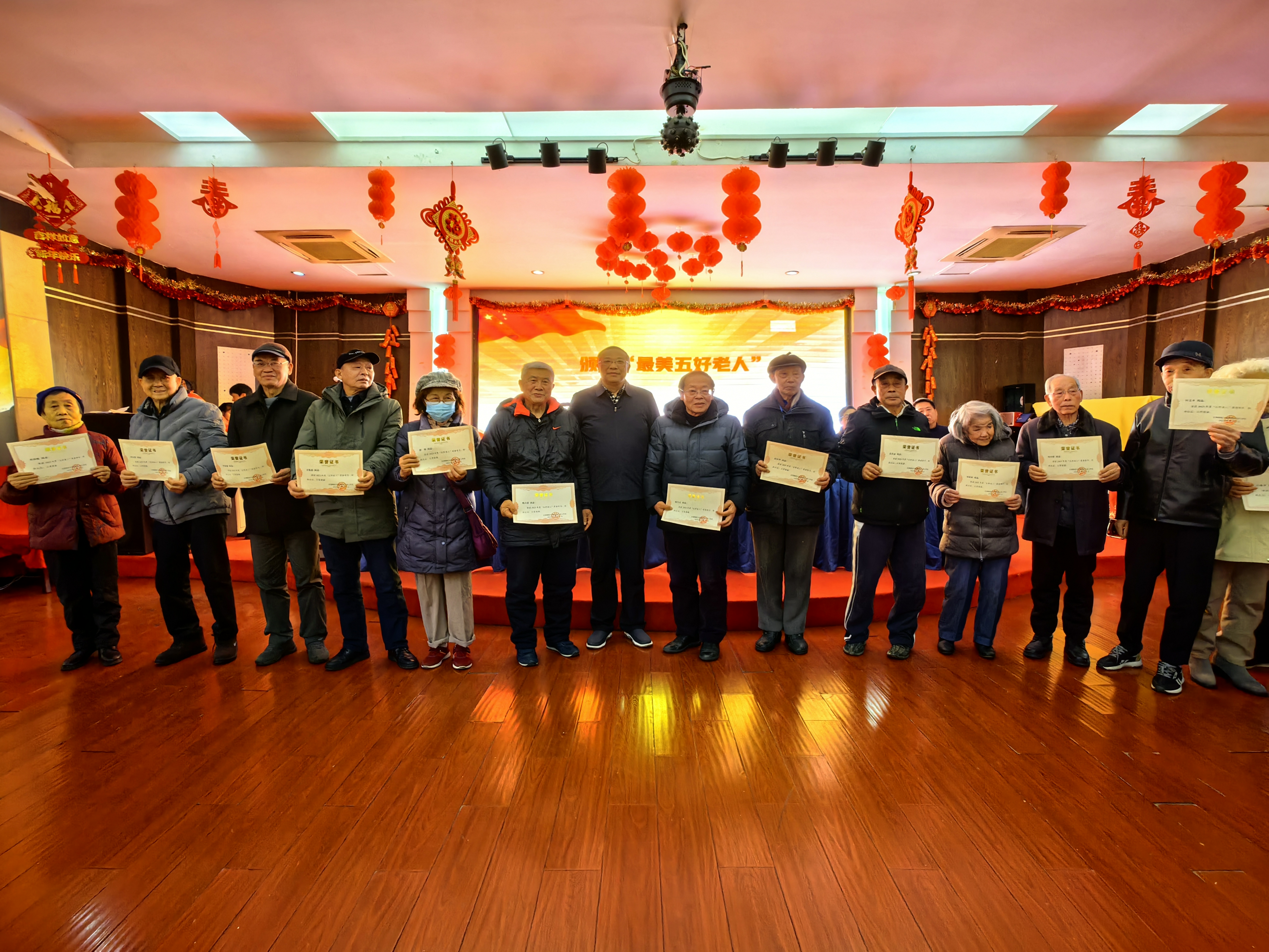 阙善栋为“最美五好老人”获奖者代表颁奖。