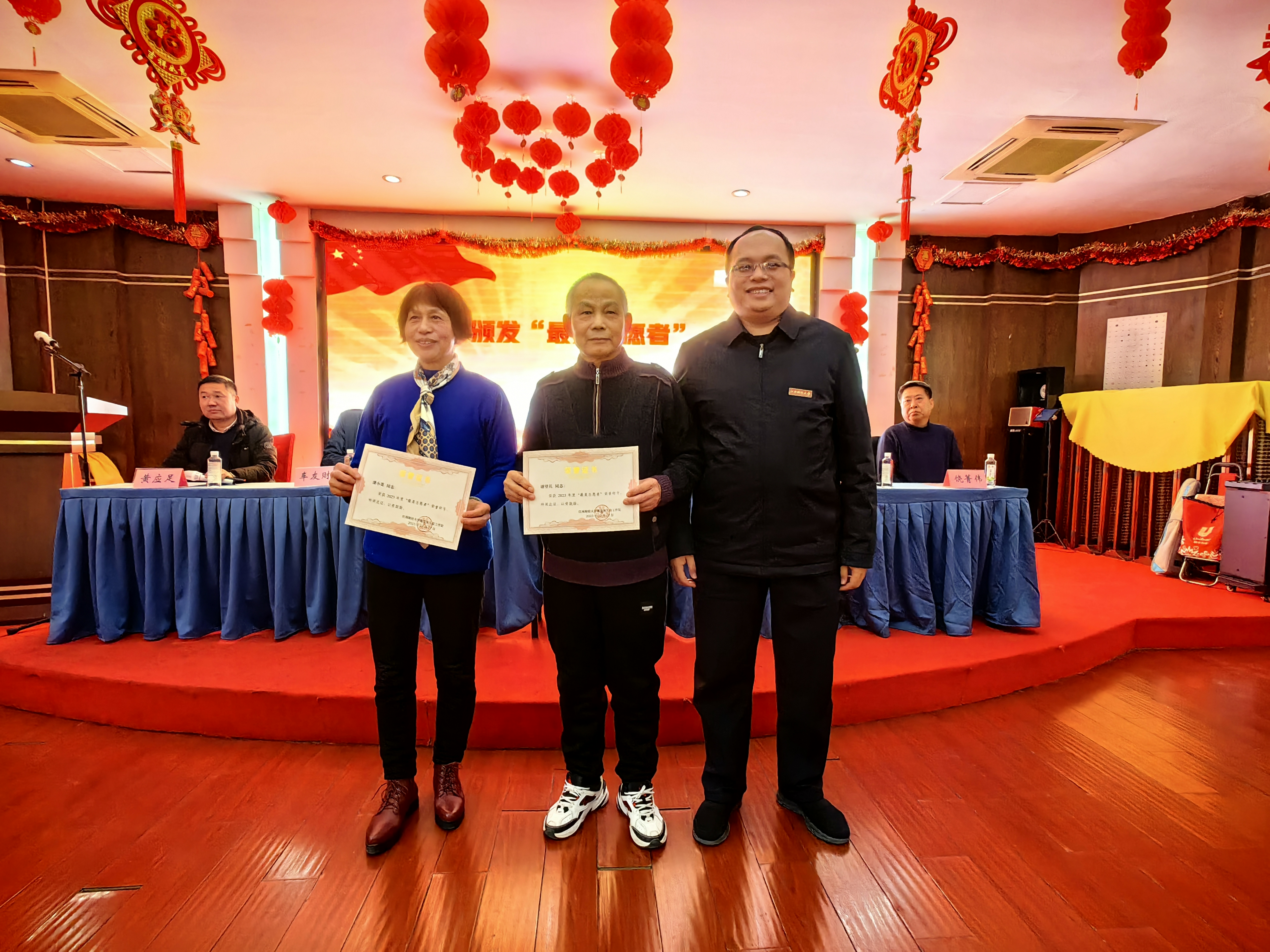 车友财宣读夕阳红先进个人表彰决定。“最美五好老人”代表熊大信、“最美科研宣传积极分子”代表徐沅林以及新退休教职工代表陈家琪分别发表了充满真挚情感的感言。