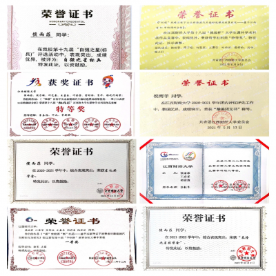 “夫学须静也,才须学也;非学无以广才,非志无以成学。”大二时,由于专业排名靠前,有部分学长学姐建议侯雨菲考虑推免。从这时开始,她才了解到学校的推免政策,并默默为之努力。然而,推免之路并非一帆风顺。大二期间,由于时间分配有所欠缺,侯雨菲的成绩并没有达到预期。如何分配时间才能将每件事都做好?侯雨菲选择在前进中寻找答案。她上课认真听讲,课后从不敷衍作业,还会利用课余时间用网课拓展自己对知识的理解,把专业课知识钻研透彻。“天道酬勤”是她的座右铭,亦是她的践行之道。大三时,她的成绩再次重回专业前列,并在竞争中以优异的综合成绩脱颖而出,最终顺利拿到中山大学的推免资格。大学的奋斗时光里,侯雨菲获得的包含国家奖学金在内的九项奖学金就是对她努力学习的最好回馈。
