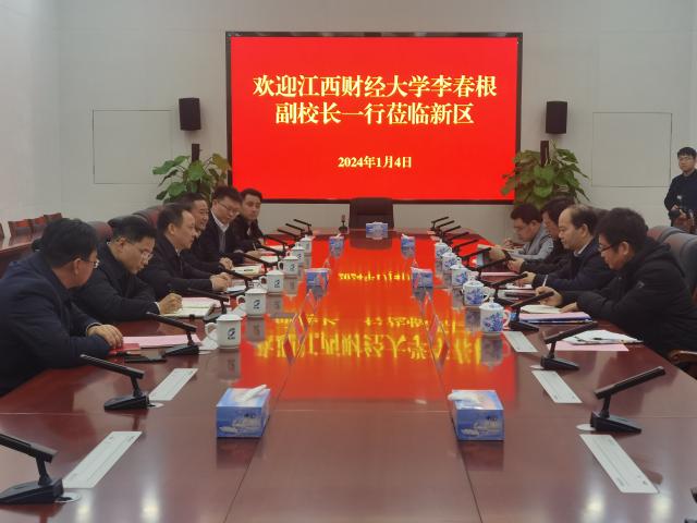 在赣江新区管委会,新区党工委专职副书记罗进对李春根一行的到来表示欢迎。罗进介绍了赣江新区产业发展情况及相关政策。他表示,江西财经大学是省内知名高校,拥有优秀校友资源,希望双方围绕新区重点发展产业,在人才引进、科技创新、实习实训、创业孵化、成果转化等多个渠道推进务实合作。