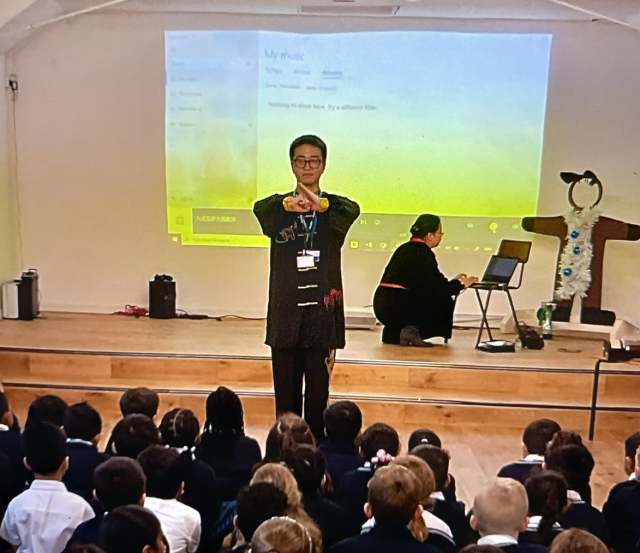 英国当地时间1月11日,考文垂大学孔子学院应伯明翰沙伯里学校(Shrubbery School)邀请,前往该校开展中国文化体验日系列活动。该校学生在考大孔院教师的带领下,一起学唱中文歌、欣赏古筝曲和太极表演。武术、剪纸和五子棋现场课堂教学也让学生们生动、具体地感受到了中华传统文化的魅力。