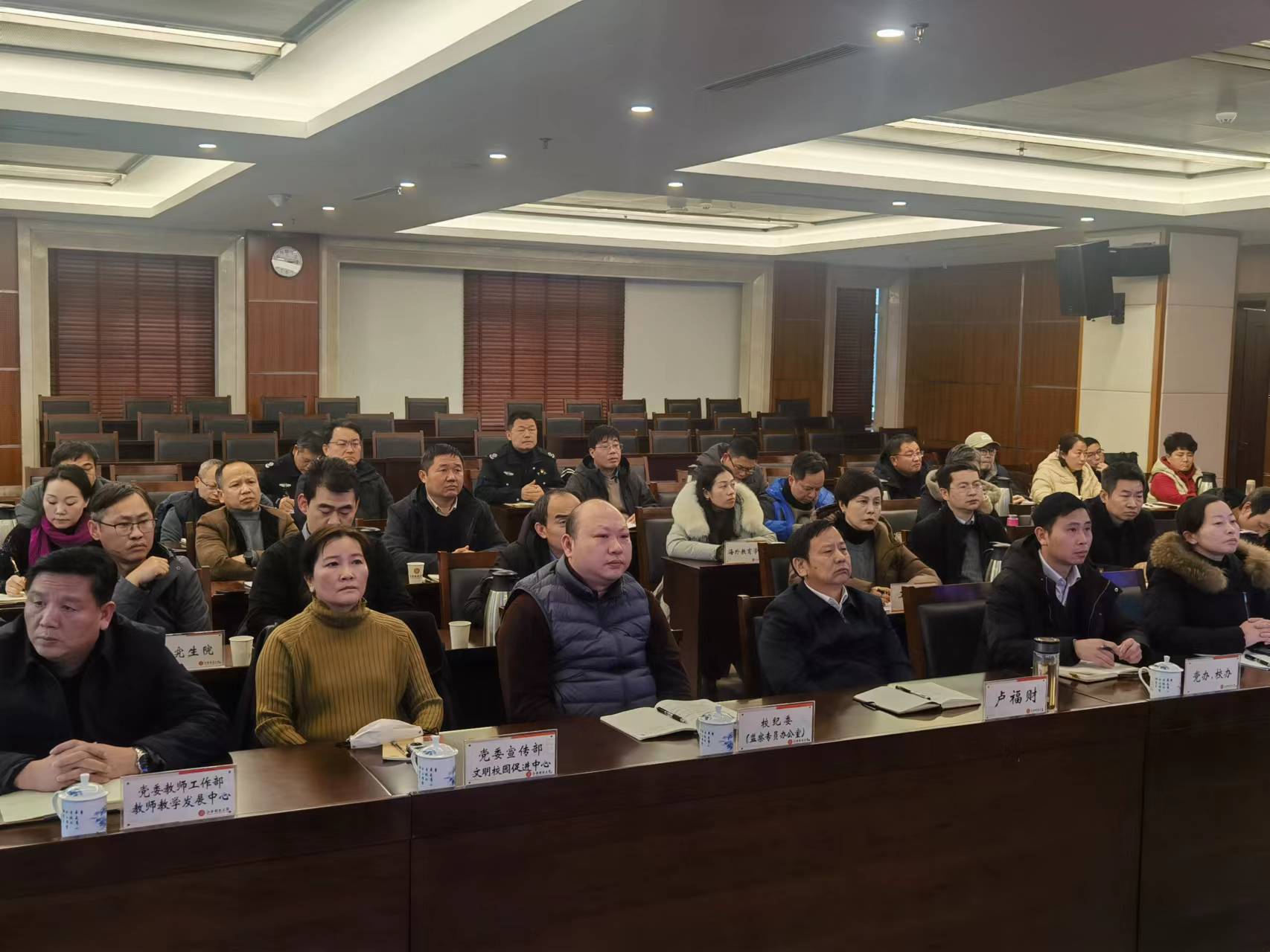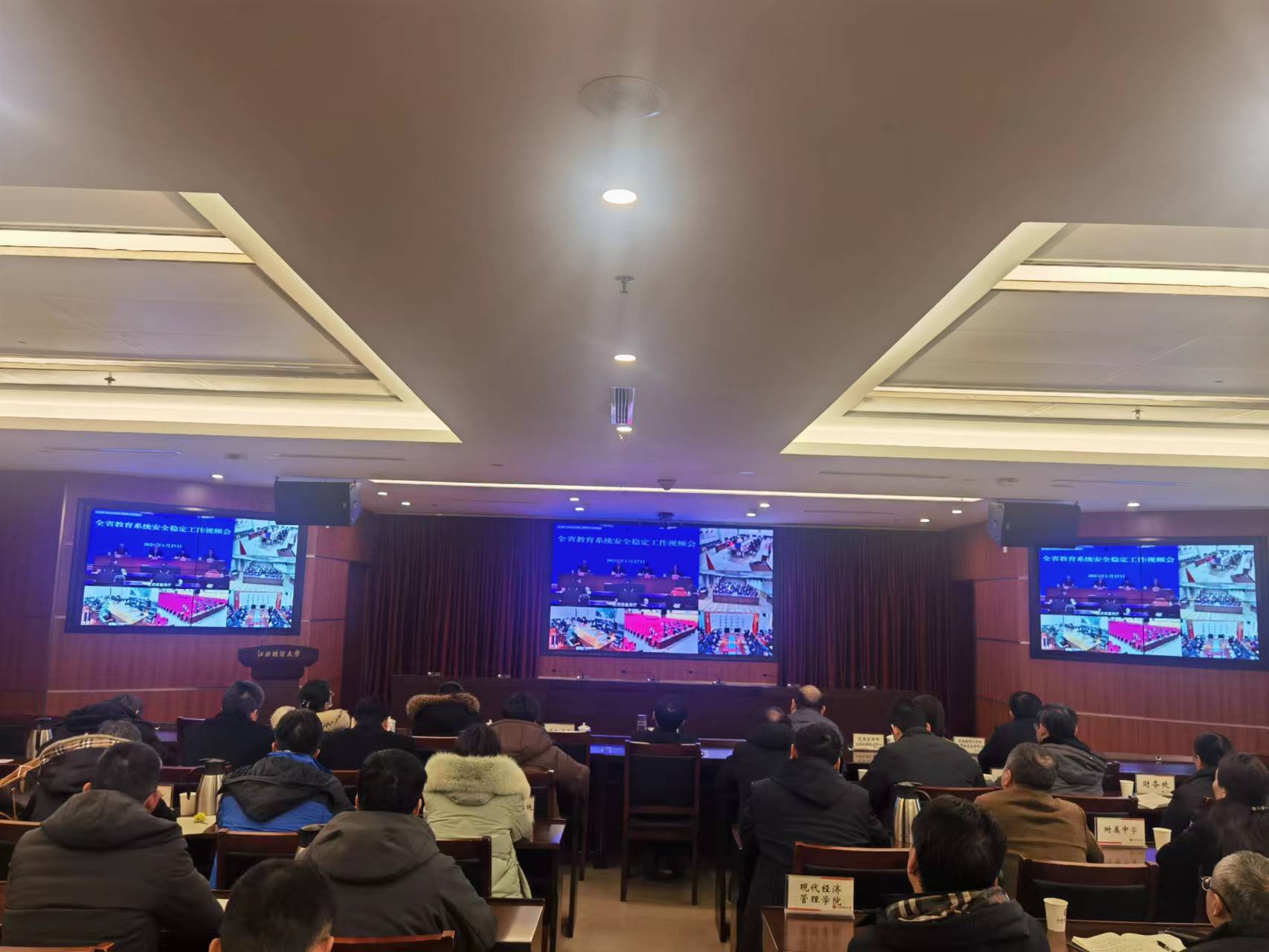 为深入贯彻省教育厅有关教育系统安全稳定工作的重要部署,1月27日下午,校党委书记卢福财及校属各部门主要负责人参加了全省教育系统安全稳定工作视频会议,本次视频会议出席的有省教育厅厅长吴永明,副书记郑志军,副厅长程裕秋,副厅长汪立夏。