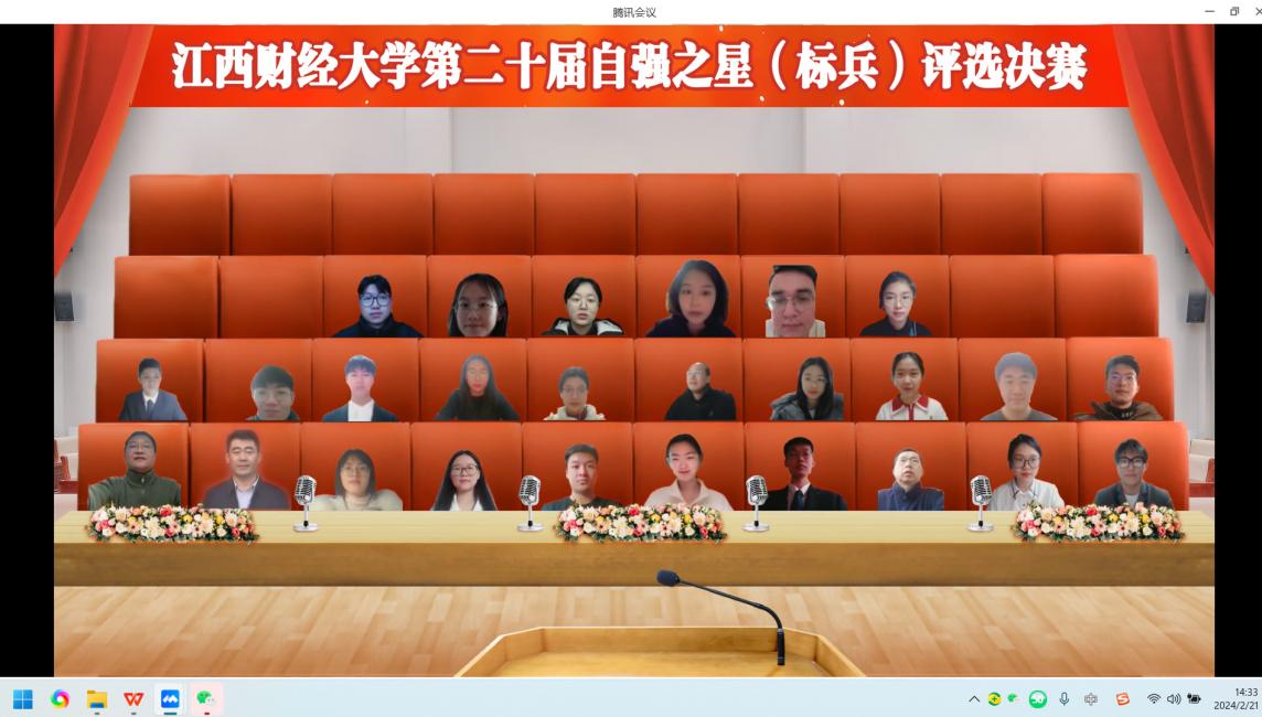 为选树先进典型,发挥榜样作用,激励广大青年学生自立自强、奋发成才,2月21日下午,学校线上举行以“踔厉奋发,勇毅前行”为主题的第二十届自强之星(标兵)评选决赛,15位自强之星标兵候选人和5个候选科创团队参与展示角逐。校团委书记王昊、党办校办副主任吴宗福、宣传部副部长李大晖、大学生职业发展中心副主任阮艳平出席活动并担任评委,活动由学工处副处长夏贤明主持。