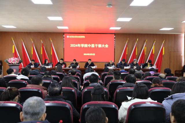 黄黑平强调,2024年,学院党委将紧紧围绕学院中心工作,聚焦人才培养主责主业。持续推动政治理论建设全面提升;牢牢把握党对意识形态工作的领导权,进一步加强和改进思想政治工作;突出正风肃纪,大力营造风清气正的良好政治生态;进一步加强师德师风建设,积极引导全体教职工恪守教师职业道德、履行教书育人使命。以一流党建为引领,以立德树人成效为标准,以改革创新为动力,以高质量党建引领保障支撑各项事业高质量发展。他希望全院上下凝心聚力、振奋精神、坚定信念,奋力开拓,聚精会神谋发展、一心一意当主人,为实现学院高质量发展、更好担当“为党育人、为国育才”神圣使命再建新功。