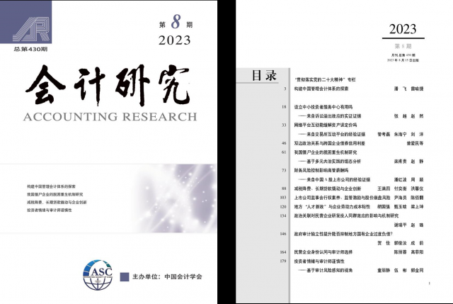 近日,会计学院教师管考磊教授、2021级硕士朱海宁和2019级硕士刘洋合作撰写的论文《网络平台互动能缓解资产误定价吗——来自交易所互动平台的经验证据》,在国内权威B+期刊《会计研究》公开发表。