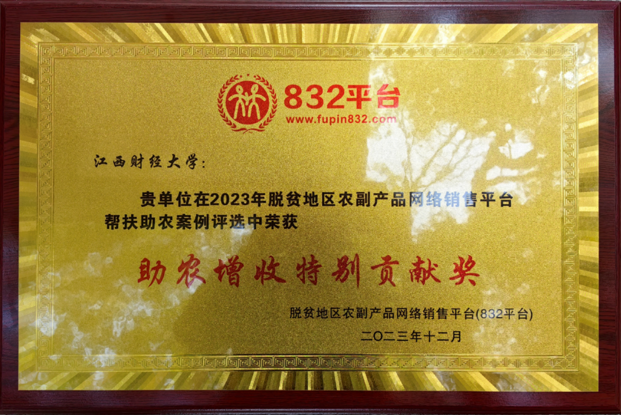 近日,我校在“832平台”开展的2023年脱贫地区农副产品网络销售平台帮扶助农案例评选中荣获“助农增收特别贡献奖”。
