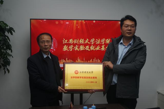 随后,易有禄和汤剑代表双方签订了共建江西财经大学法学院教学实践以及就业基地协议,易有禄和朱丘祥共同为教学实践以及就业基地正式揭牌,此次会议圆满结束。