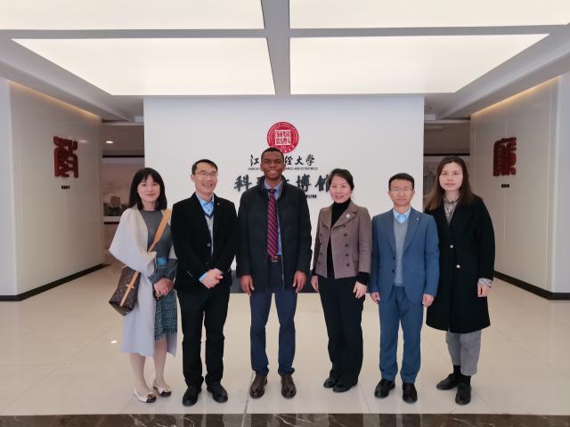3月14日上午,美国驻武汉总领事馆经济处处长蒋鹏博(Mpaza Kapembwa)一行来校访问,与我校相关人员进行座谈交流并参观校园。副校长李春根主持座谈会并致辞,江西省人民政府外事办公室美大欧处处长陈智青出席座谈会,我校国际合作与交流处、国际学院等单位负责人及省外办相关工作人员参加座谈会。