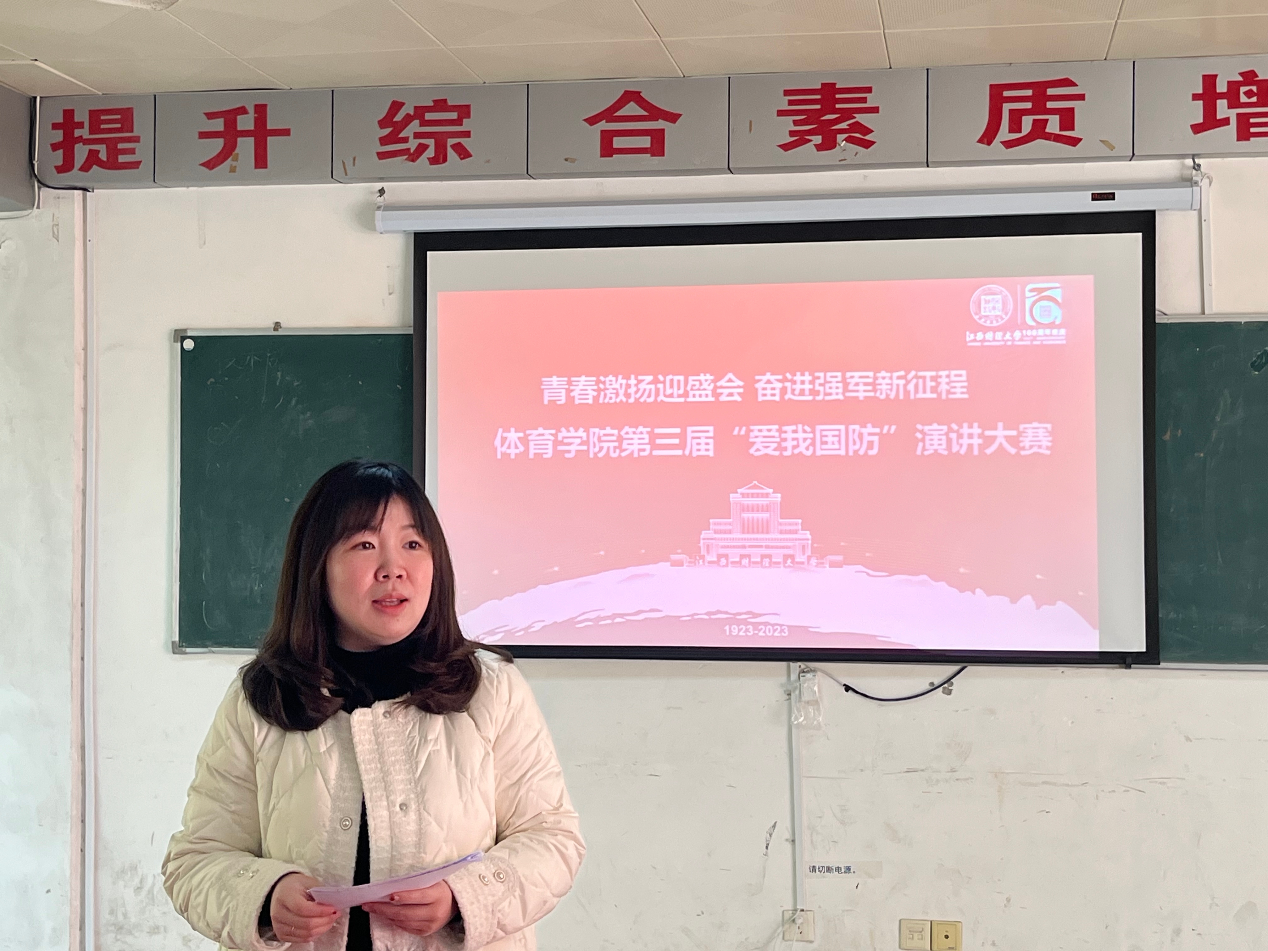 为增强青年大学生的国防观念,树立爱国情怀,3月20日下午,体育学院于宁庐学生党员活动室举行以“爱我国防”为主题的演讲比赛。党委书记欧阳迎、国防教育系主任李昌卫和团委书记彭潇雅担任本次比赛嘉宾评审。