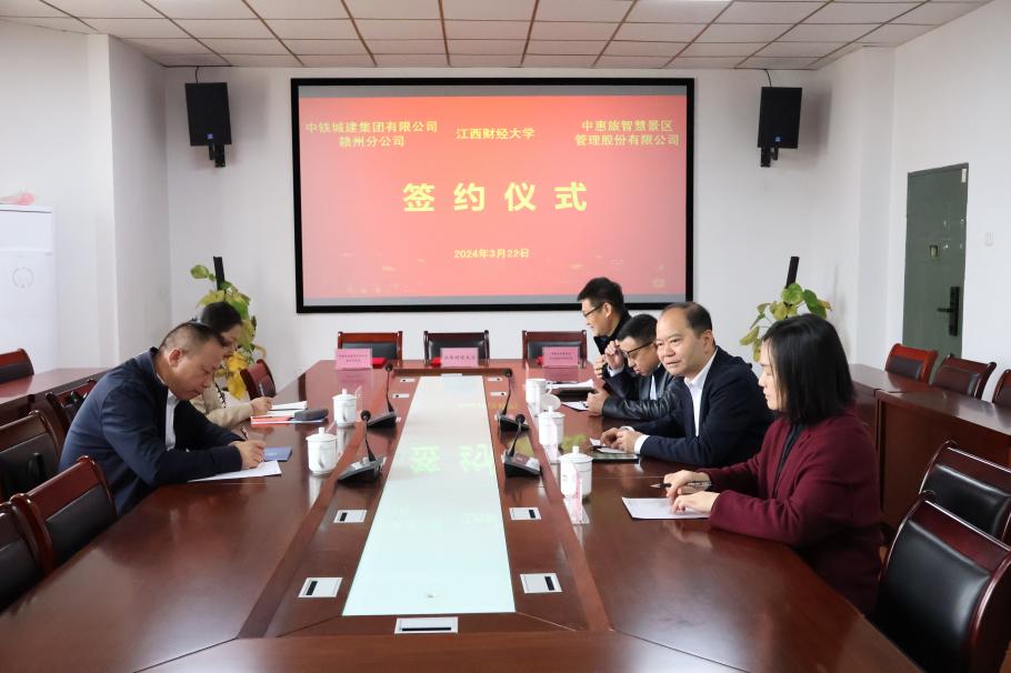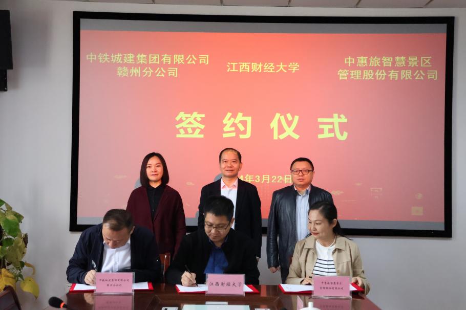 3月22日上午,我校与中铁城建集团有限公司赣州分公司、中惠旅智慧景区管理股份有限公司举行数字文旅项目签约仪式。副校长李春根、中铁城建集团赣南分公司总经理赵旭华、中惠旅集团县域旅游投资部总经理郭柔出席签约仪式,发展与合作处处长毛小兵、虚拟现实(VR)现代产业学院院长廖国琼、产业副院长汪翠芳等参加仪式。