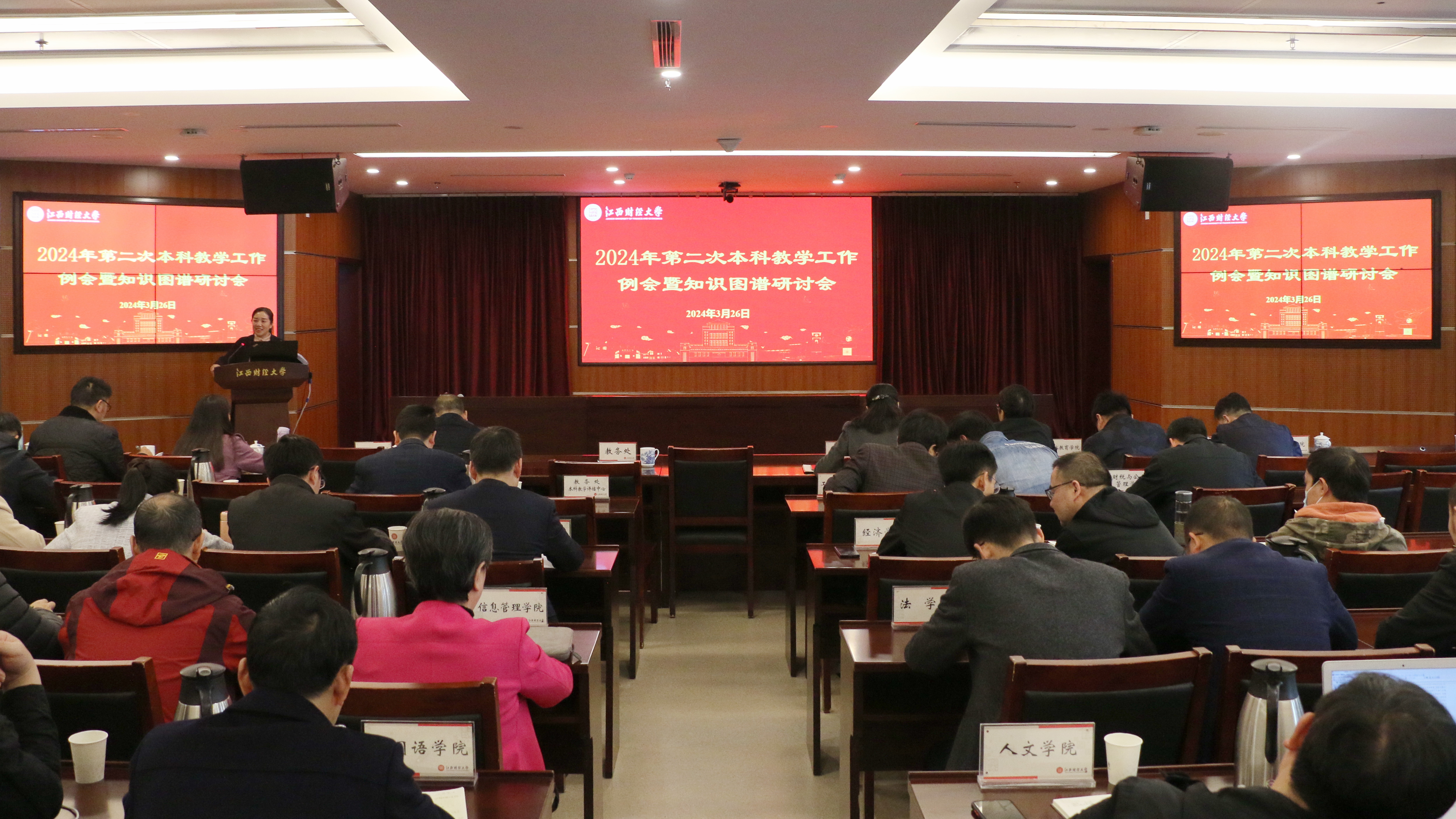 3月26日下午,我校2024年第二次本科教学工作例会暨知识图谱研讨会在蛟桥园图文信息楼第二报告厅召开。教师工作部(教师教学发展中心)、学工部(处)、招生就业处、创业教育学院、海外教育学院、智慧校园管理中心单位负责人、本科教育督导组正、副组长,各学院教学副院长及系主任,教务处、本科教学评估中心副科以上干部,共计80余人参会。会议由教务处处长万建香主持。
