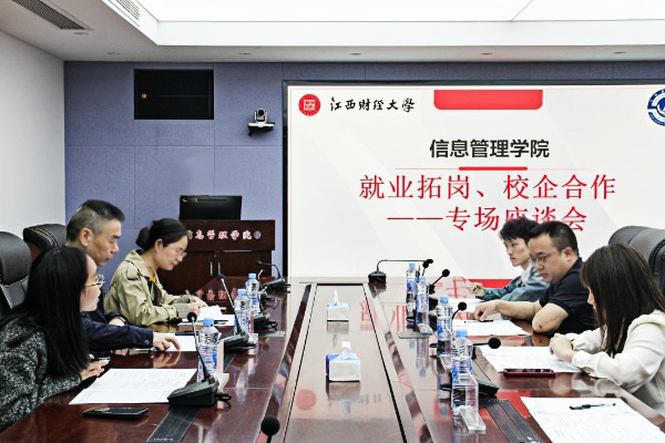 4月13日,信息管理学院举办就业拓岗、校企合作座谈会。院党委书记张志军、党委副书记杨婉琪和辅导员刘燕婷以及通联支付网络服务股份有限公司江西分公司、宇途恒智科技有限公司、南昌市海纳网络有限公司、深圳市乐有家控股集团有限公司等四家企业参加了此次座谈会。