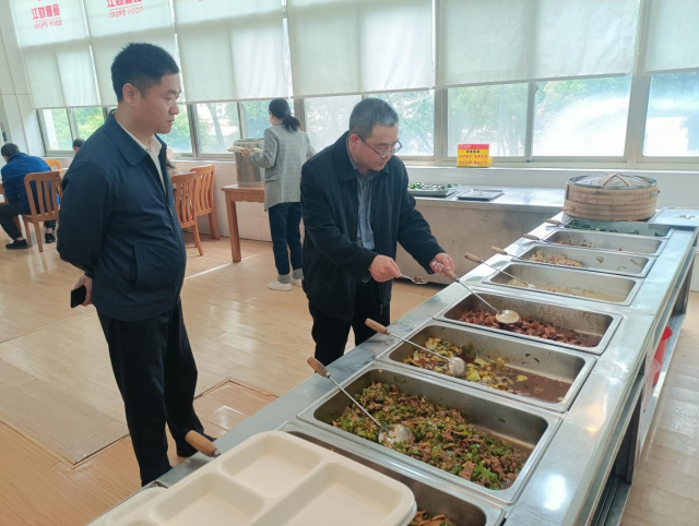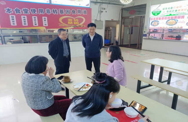 顾有平在检查过程中,碰到了正在食堂工作的资产经营中心负责人,就一道对食材采购、食堂卫生等情况进行监督检查。检查过程中,不时与正在就餐的师生进行交流,听取师生对食品安全工作的意见建议。