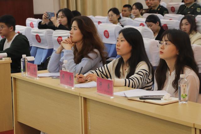 为深入学习贯彻习近平强军思想,全面贯彻党的二十大精神,推动新时代全民国防教育工作深入普及,4月17日下午,校团委与体育学院联合举办的“爱我国防”主题演讲比赛校级决赛在蛟桥园校区南区大学生活动中心103室举行。统计与数据科学学院辅导员庄园、招生就业处综合科老师杜玲、校团委组织宣传科老师熊孜贤出席活动并担任专家评审,各学院学生代表参加活动并担任大众评审,共二十三名参赛选手进入决赛。